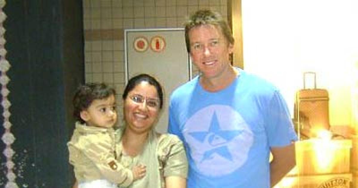 'We met Glenn McGrath in Johannesburg (South Africa)on April 20, 2009. He immediatly said yes for a picture. He played with our daugther Aadya for some time.