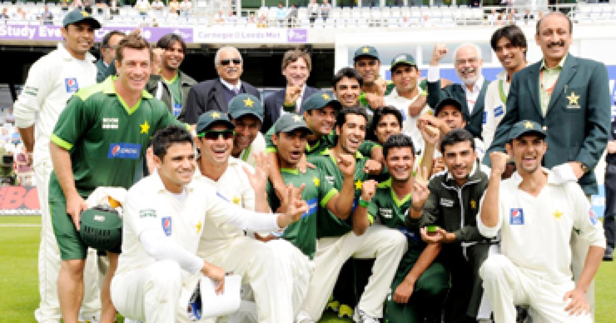 The Pakistan team took a lap of honour around the sparsely-attended ground in what was Salman Butt's first Test as captain, as a smattering of vocal Pakistanis cheered them.