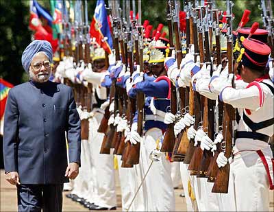 Image: Prime Minister Dr Manmohan Singh inspects a Guard of Honour at the Alvorda Palace.