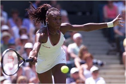 Venus Williams in action against Shinobu Asagoe. Williams won in straight sets 6-2, 6-3.