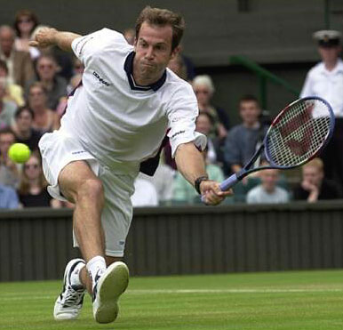 Greg Rusdeski (GB) in action against Juan Carlos Ferrero (ESP) Rusedski set up a clash with Goran Ivanisevic, the big serving Croat, after winning in straight 6-1, 6-4, 6-4.