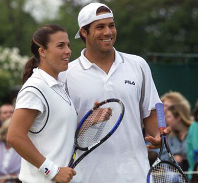 Jennifer Capriati of the USA with her brother and double's partner Steven in their match against M.Knowles of Bahamas and Miss.N.Arendt of the USA. The Capriati's lost in straight sets 6-1, 6-4.