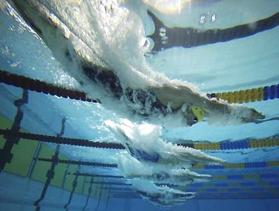 The start of the Men's 200m Freestyle swimming final from the Manchester Aquatics centre during the 2002 Commonwealth Games in Manchester, England.