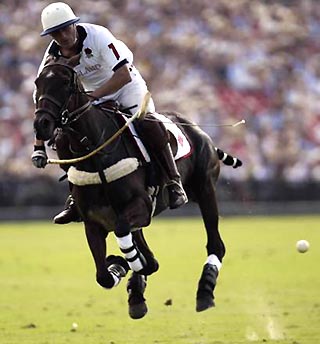 Will Lucas of England in action during the Cartier International Polo Day played at the Smiths Lawn Polo Grounds in Windsor Great Park in Windsor