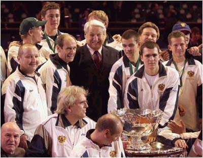 Former Russian president Boris Yeltsin, the self-proclaimed team mascot, who witnessed every match in the three-day final was delighted after Russia's maiden Davis Cup win.