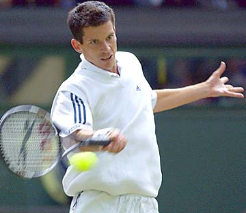 Tim Henman of Great Britain led Brazil's Andre Sa by a set, 6-3, when play was called off with dusk falling.