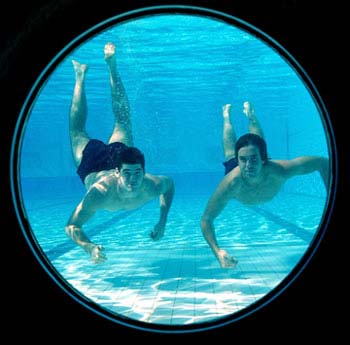 Jonathan Brown and Dylan McLaren of the Brisbane Lions cool down after a training session at the Valley Pool in Brisbane, Australia on June 12, 2002. The Lions players played a game of Water Polo amongst each other as a form of training to prepare for the rest of the AFL season.